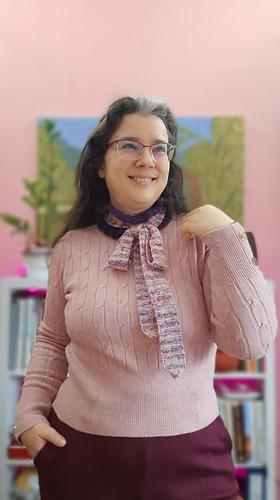 A peça segue uma construção em 2 partes: primeiro é tecida a fita central, de ponta a ponta, e numa 2ª fase esta é adornada por um motivo rendado e folhado, em cada lateral, que torna este lenço num acessório bem quentinho e indispensável neste Inverno, adequado a todas as ocasiões.