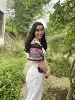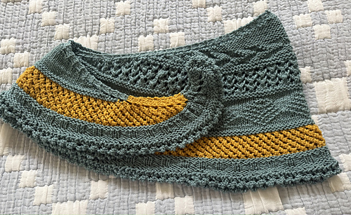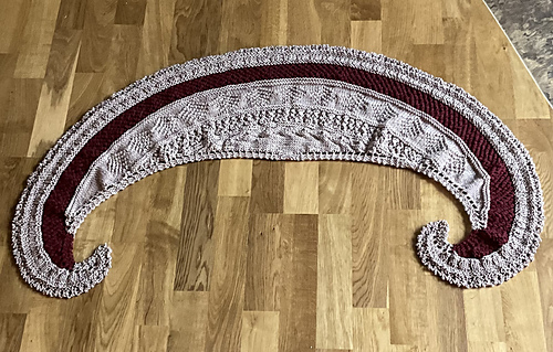 The Lenten MKAL for 2026 is a crescent shawl worked from the top down in gansey-style knit-purl patterns and simple lace.