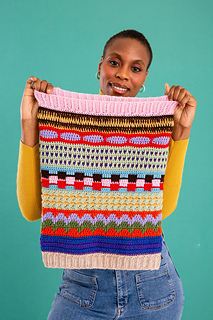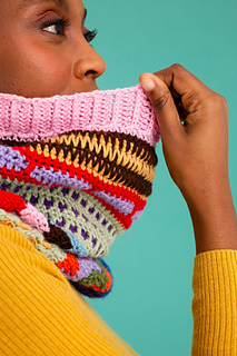 Have fun playing with a colourful motley crew of crochet stitches in this warm and cosy cowl.