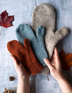 The mitts are worked in the round, beginning at the cuffs. Choose a classic rib to block harsh winds, or keep things clean and minimalist with a simple purled border. Comfortably placed thumb shaping is worked with a single column of increases on the palm, creating a curved line that echoes the lifeline on the hand. After finishing the increases adjacent stitches will be put on hold for the thumb and you’ll continue working in the round for the rest of the hand, for your choice of a fingerless mitt or full mitten. Finally you’ll return the held thumb stitches to the needles and complete the thumb to match the hand.