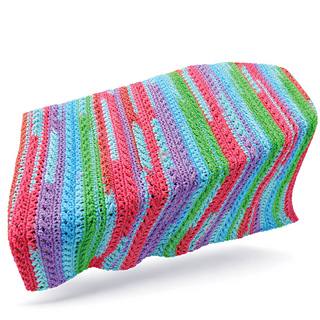 Crochet a palliative or lapghan-size blanket with easy repeating textured stitches. Let the yarn colours just naturally appear from the ball and into your crochet project.