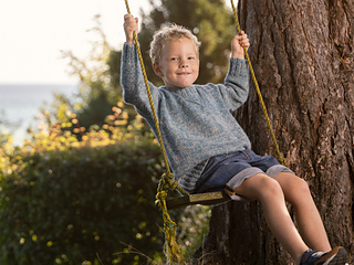 First, the back yoke is worked, with the shoulders shaped using short rows, the remainder of the yoke is knitted before it is set aside while the front is worked.