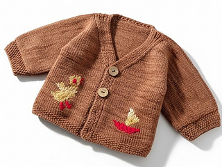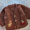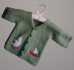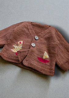 This adorable cardigan is knitted flat, starting at the back bottom up, and then continues from the front top down.