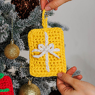 These crochet gift ornaments are tiny reminders of the joy that makes the season special. Stitched in any colors of Bernat Maker Minis that match your holiday theme, this is a quick project that has you practicing single crochet, surface slip stitch, and chain stitch techniques. So much fun to make, and versatile to enjoy, you can hang them on the tree, tuck them into wreaths, or tie them onto gifts as a special handmade surprise.
