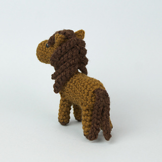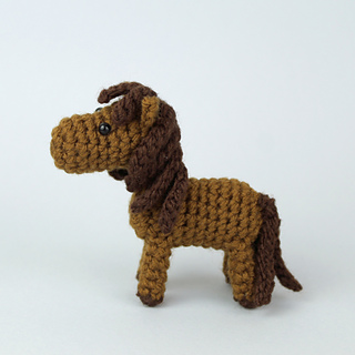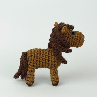 Legs are joined to the body as you crochet, ears are made as part of the head and the neck is worked into skipped head stitches, so the only parts that need sewing are the neck to the body, and the mane and tail.