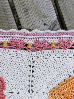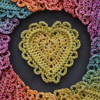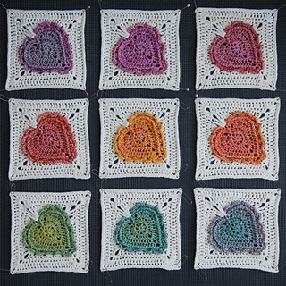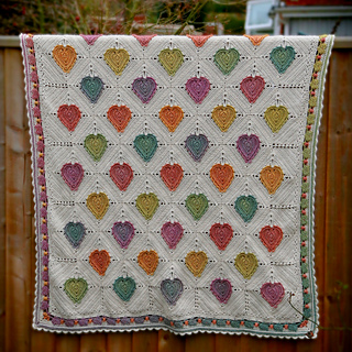 This blanket features 59 heart motifs, made with a slow-colour-change yarn and bordered with even more tiny hearts.