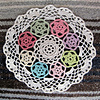 Eight smaller motifs are joined on the last row to the central motif and to each other. These motifs are then bordered with a chain mesh.