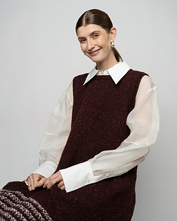 Livø Dress is ideal for spring, as it can be worn both on its own or layered. The dress has a beautiful silhouette with a subtle A-line shape. The lower part of the dress features an elegant border worked in slip-stitch pattern. The dress is knitted in Tweed and Blow, which together create a rich and vibrant play of colours.