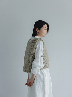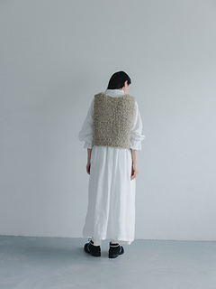 クルクルとした毛並みが可愛らしいLOOPの糸で編んだ前開きのボアベストです。