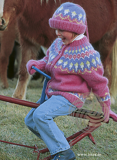 The 12-26 pattern is part of the LOPI 12 book and designed by Bára Þórarinsdóttir and it includes one pattern for a kids sweater, mittens and hat It’s all made out of Icelandic Álafosslopi yarn by Ístex.