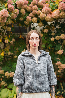 This particular sweater is knit in the easy top-down raglan style using circular needles for a seamless simple construction.