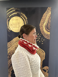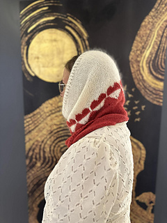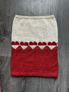 Love to Kalaallit Nunaat - halsrøret strikkes rundt på rundpind, som et langt rør, til den anbefalede længde. Halsrøret strikkes dobbeltrådet med 1 tråd i Alpaca Silk og 1 tråd i Mohair Silk.
