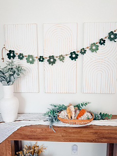 The stitching itself is simple and satisfying, making this a relaxing project that comes together quickly. Once your shamrocks are complete, the pieces are strung together to create the garland and finished with gold beads for a touch of festive sparkle. Hang your new garland across a mantel, shelf, window, or party table to instantly add a cheerful pop of handmade charm.
