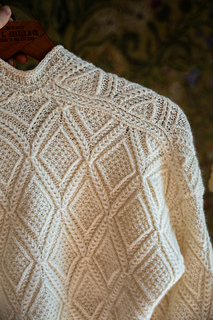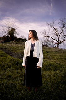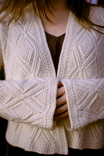 This drop shoulder style cardigan construction is worked from the bottom up - flat for the body and in the round for the sleeves. Suited for any knitter that is comfortable with small cables, making increases and decreases - this pattern quickly becomes rhythmic and engaging to knit. It has very simple shaping so as to minimally disturb the intricate cable knit motif. This pattern includes a charted version of the main cable pattern as well as instructions written out row-by-row (for working flat) and round-by-round (for working in the round). This design requires some time and persistence due to the fine textures and cables throughout.