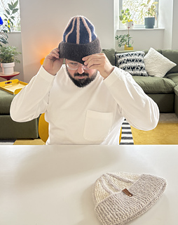 The name LUN comes from Danish and means warm and cozy. It nods to Hobbii’s Copenhagen Fibers Baby Alpaca Blend, chosen for its softness and lightness. With its contrasting edge and clean vertical stripes, the hat captures that simple, comfortable warmth.