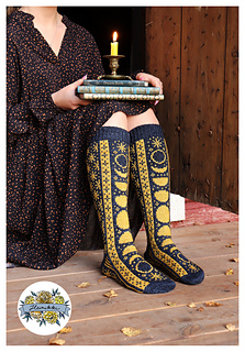 The Lunar Socks was first published in Finnish at 2023 in the knitting book called Villasukkabuffet - Toinen kattaus. The Moon themed socks had been on my mind for a long time, because the subject is very dear to me and I find it interesting. The enchanting and beautiful, ever-changing Moon has charmed me and I never get tired of looking at it.