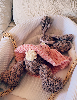 Stitches used for the bunny include ch, sl st, sc, dc.
