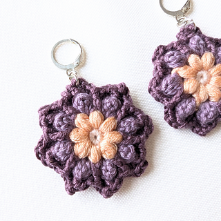 Purchase the Lydia Earrings pattern on Etsy - https://www.etsy.com/listing/1492814190/lydia-earrings-crochet-pattern-flower