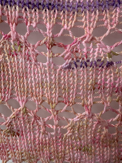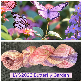 The lace pattern evokes butterfly shapes, since the inspiration for LYS 2026 is Butterfly Garden.
