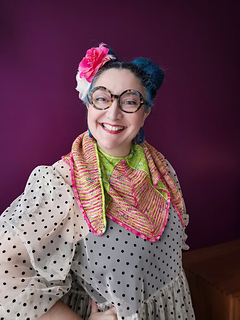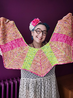 You can get the pattern for free if you pledge to knit the shawl with 2 or more knitting friends, in one main colourscheme (purples, yellows, blues…, with or without the addition of neutrals, only the i-cord can be in contrasting colours) and send it to Knit At Motoco (in France) before May 15, 2026.
