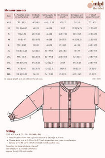 Sleeve circumference: (33, 37.5) 39.5, 41.5, 46 (48, 52, 54) 58.5, 62.5 cm | (13, 14.75) 15.5, 16.25, 18 (19, 20.5, 21.25) 23, 24.5 inch.