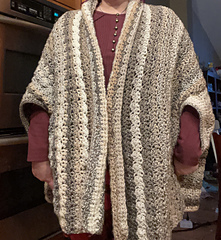 Cocoon worked from the top down in parts: Neck (Rows), Back (Rows), Seams (Sew), Sleeves (Rounds).