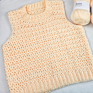 Vest is worked from the bottom up in the round, and then split into panels to create the armholes. Neckline and armhole trim is added at the end.