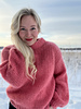 The sweater is knitted from the bottom up, first in one piece in the round up to the armholes, after which the work is divided into the front and back pieces, which are knitted separately and finally joined at the shoulders. The neck ribbing is worked at the end from stitches that are picked up and knitted along the neck edge, after which it is turned twice at the end to give it a clean finish. When the body is ready, stitches for the sleeves are picked up and knitted along the armholes and the sleeves are worked in the round down to the cuffs. The broken rib stitch pattern is created by alternating stockinette stitch and 1 o 1 rib stitch between rows.