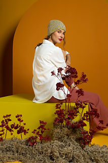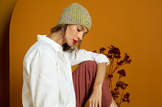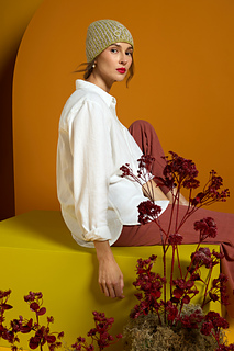 Rustic beauty and seasonal charm define the Maize hat. This cozy beanie utilizes a clever mosaic crochet technique to mimic brioche ribbing, twisting into a leaf-like motif at the front of the hat. Linear’s silky-soft blend of alpaca and merino brings warmth, comfort, and a gentle marled effect to every stitch.