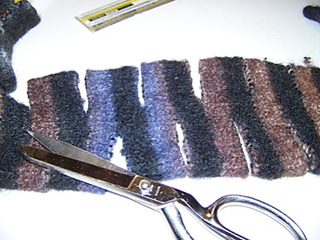 Scarf is felted. To finish cut slits on long side 1.5 - 2 inches deep.