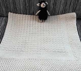 Blankets knit flat, in one piece, back and forth on circular knitting needles in order to accommodate the large number of stitches.