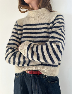 Stripes and raglan are always a great combination. On Malo Sweater, the stripes begin just below the neckline. Choose classic maritime colors or two shades that pair beautifully together. The neckband is worked at last, so it can be made exactly as long as you like.