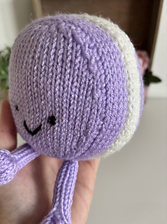 Your finished macaron will measure around 16cm tall. This is a fun project for beginner to intermediate level knitters.