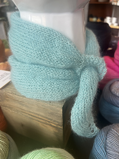 Knit in Lana Grossa Setasuri this lighter than air keyhole kerchief is elegant and warm and feels lovely against the skin.
