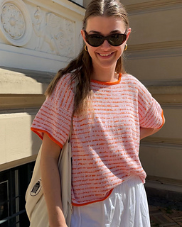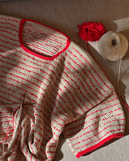 Du skal blot være let øvet for at kunne holde styr på stribemønsteret, strikke i-cord-kanter og samle masker op langs halskanten med udtagninger.