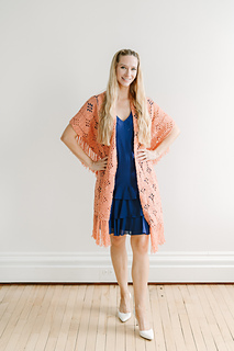 The back features four stunning square motifs joined seamlessly—no sewing required—while the front panels showcase a matching filet pattern that flows gracefully.