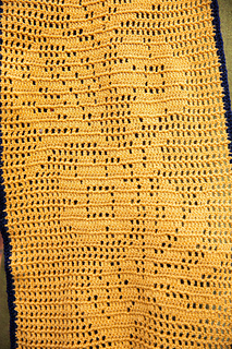 This pretty scarf uses filet crochet to depict William Morris’s timeless marigold pattern.