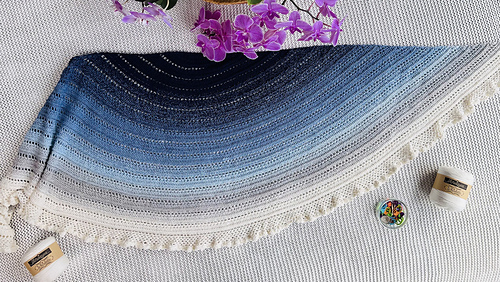 THE SIZE OF THE SHAWL: 55 cm x 190 cm after blocking.The size of the crochet shawl depends on the yarn and crochet hook used.