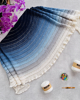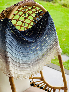It is important that the shawl falls smoothly and becomes large enough with this pattern. Crochet a swatch to find this out. If you find yourself crocheting tightly, use a larger crochet hook!