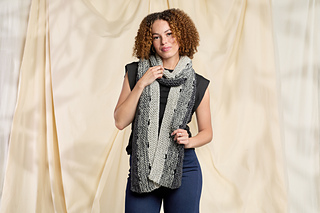 The Marled Scarf is a modern take on basic garter stitch. Four shades of our soft and durable Deluxe Worsted Superwash yarn blend to create a marled gradient of newsprint greys, while deliberately placed holes in the fabric give this piece a chic distressed look. The simple stitch pattern and edgy vibes make for a beginner-friendly project with bold results!