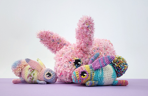 Use any combination of hook and yarn to make different size bunnies. The pattern includes notes for making all three of the variations pictured.