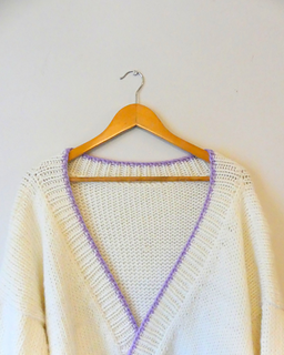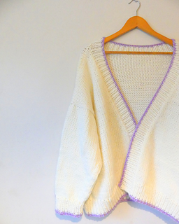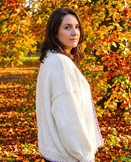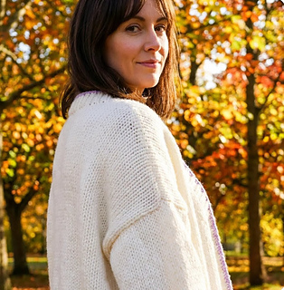 The Marshmallow Cardigan is a seamless, bulk weight cardigan suitable for confident beginner knitters. You’ll start by knitting the back panel until the point where the panel would reach your underarm when you’ll put these stitches on hold. You’ll then pick up the stitches for the 2 front panels and join these. You’ll then knit the front and back panels together. You’ll then pick the stitches up for and knit both sleeves. Stitches are then picked up for the front ribbing which is knitted in 1x1 rib. The cardigan is designed to be worn open but buttons can easily be added.