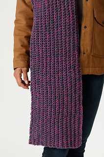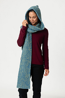 Combine two different yarns to make your own marl in this quick and colorful hooded scarf! Worked in basic single crochet without any shaping, the simple rectangular shape is ideal for beginners. Keep it as-is for a classic scarf or stitch a single seam to form a head-hugging hood.