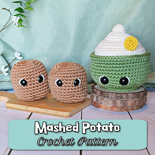 The PDF crochet pattern includes step-by-step instructions with photos to help you create your own cute little bowl of mashed potatoes. It works up quickly and makes a great handmade gift, market item, or addition to your kawaii crochet collection.