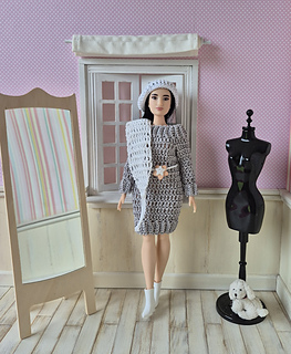 You buy a PDF file (10 pages) with dress, scarf and beret pattern.