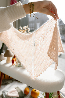 Le bandana Maya est un petit châle triangulaire tricoté avec deux fils de mohair. Il est composé de différentes sections qui permettent de rythmer le tricot. Son motif rappelle les châles traditionnels mexicains utilisés dans le rituel Rebozo.