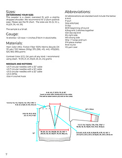 The sleeves and collar trim are knit onto the body making this pattern great for knitters who are new to garment construction and veteran knitters alike. There is an optional contrasting crochet edge applied to the edge of the collar that is included within the pattern