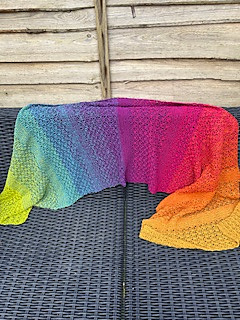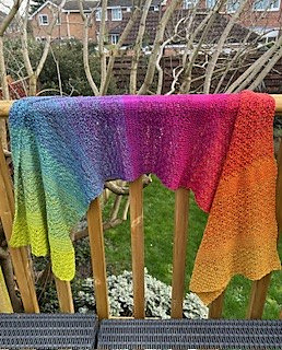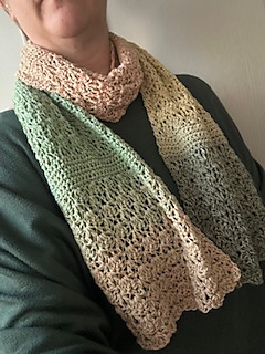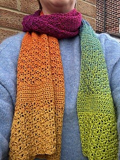 This is a lovely scarf which can be made in with a whirl or 2 whirlettes in 4ply. It can also be adapted to DK i sued a Rico Linen Cake (approx 480m in length)