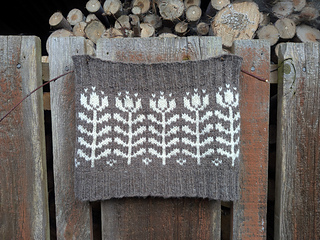 18 sts = 4 inches / 10 cm on larger needle.