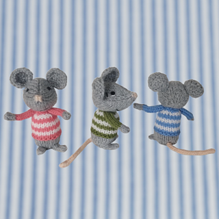 Designed by Amanda Berry @fluffandfuzz, the toys are knitted in acrylic DK yarns. Most pieces are worked on single pointed needles (not in the round). Use two DPNS to knit i- cord tubes for the arms, feet and tails.